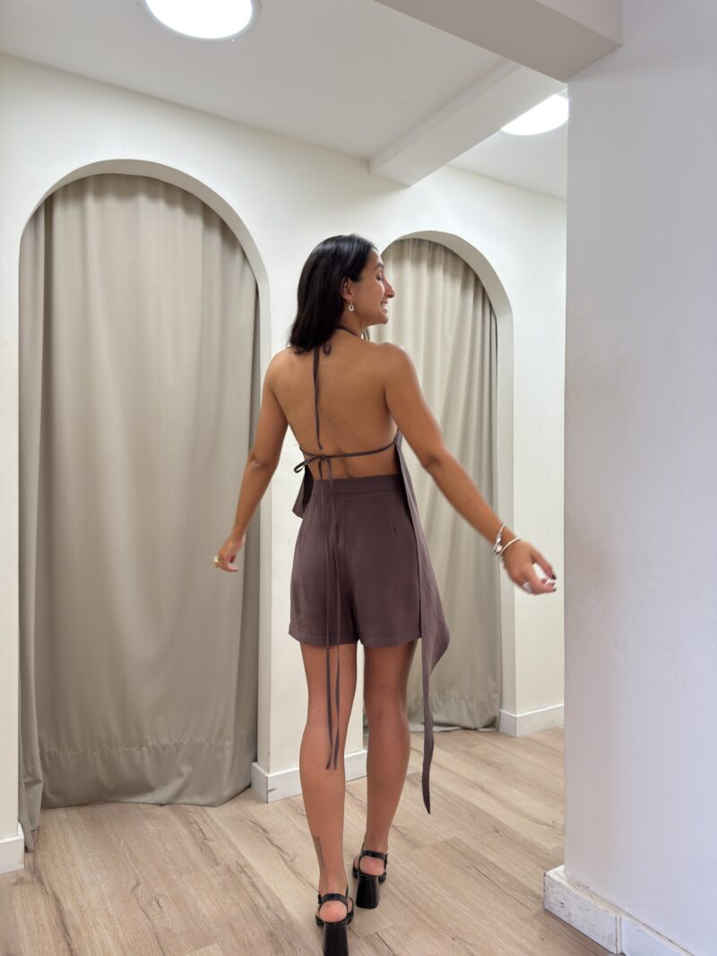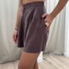 Bermuda sastrera con cierre y pinzas adelante. Tiene bolsillos a los laterales. Confeccionado en tela rústica.