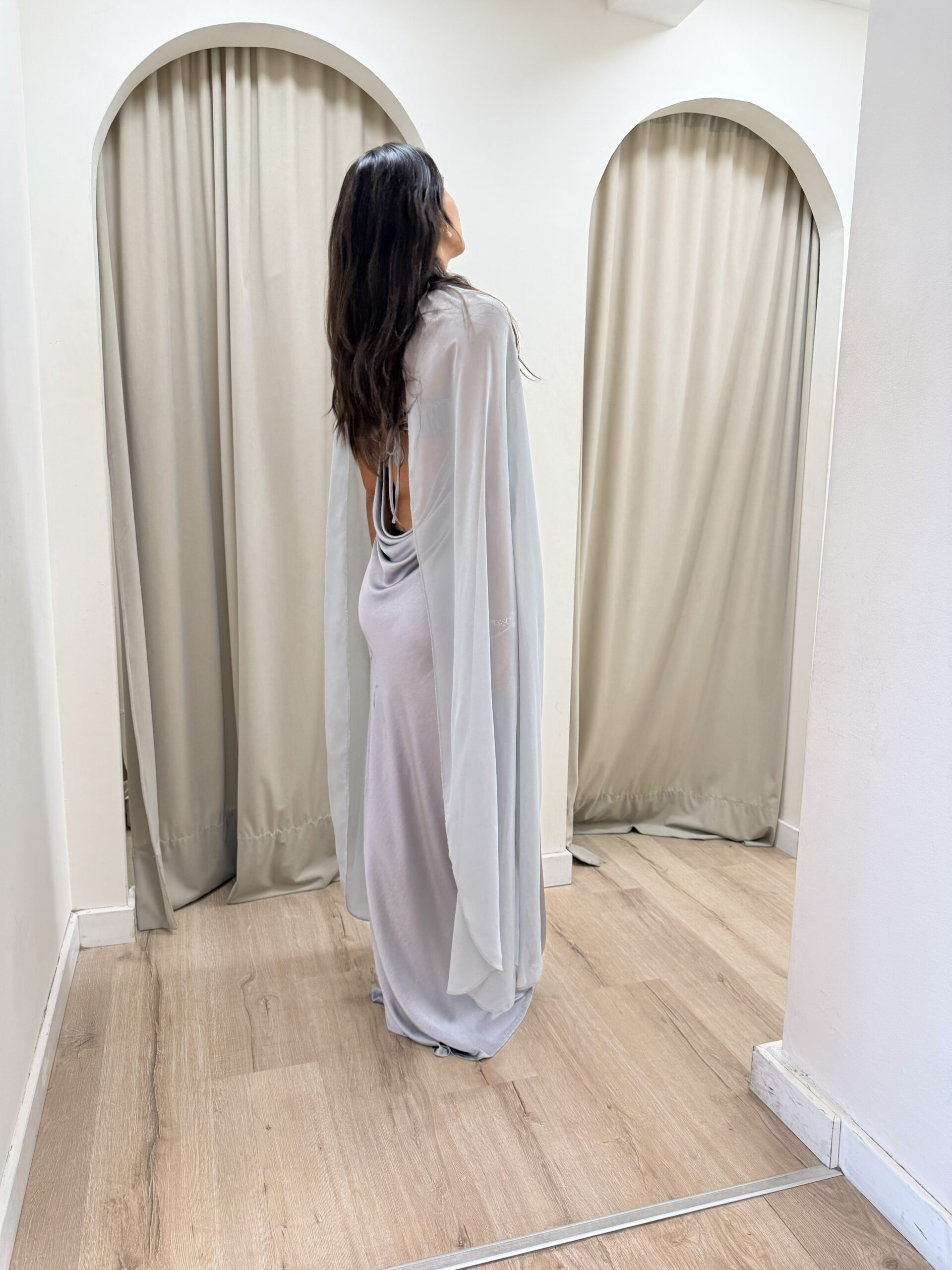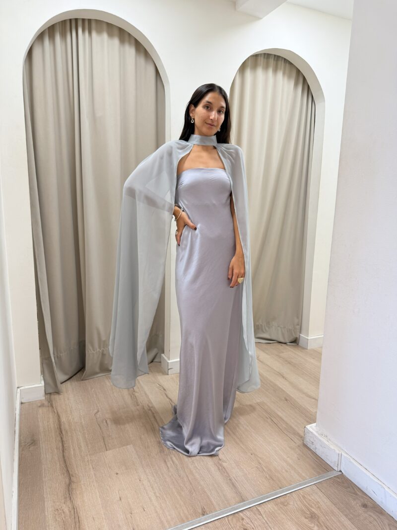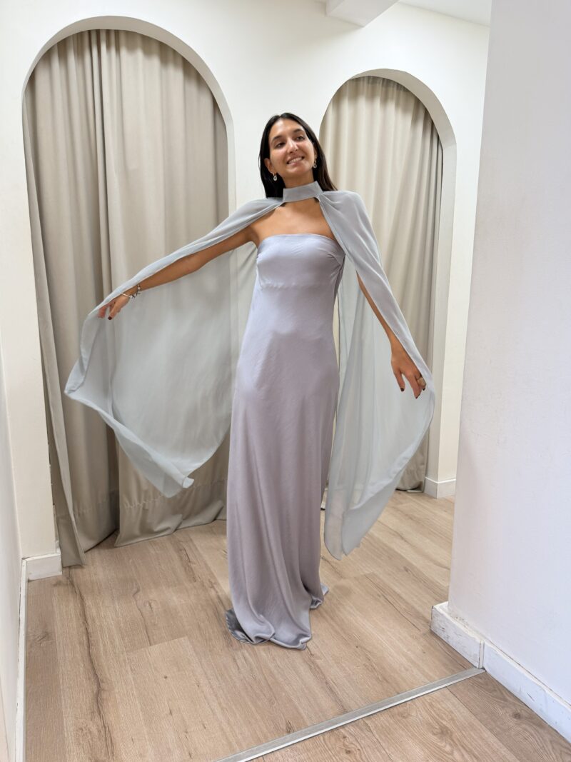 Una pieza etérea que transforma cualquier look en algo inolvidable. Confeccionada en gasa suave y fluida, esta capa cae delicadamente sobre los hombros, aportando movimiento, elegancia y un aire contemporáneo. Su diseño liviano enmarca la silueta sin cubrirla, logrando el equilibrio perfecto entre sutileza y presencia. Ideal para acompañar vestidos de noche, eventos especiales o celebraciones donde cada detalle cuenta.