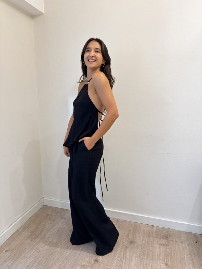 Pantalón sastrero palazzo con cierre y pinzas adelante. Tiene bolsillos a los laterales. Confeccionado en tela cupro.