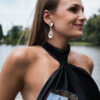 Vestido cuello halter, con drapeado en el cuello. Descubierto a media espalda.